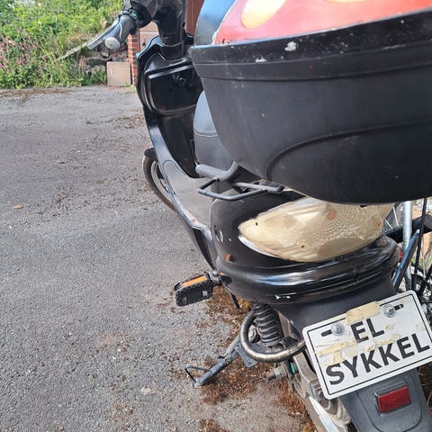 Disse er veldig populære i usa men veldig skjeldne i Norge, mulig denne er den eneste? Rammen koster mellom 15000-20000 å importere. Den har fått en god del nye deler, som oppgradert bakfelg, kontroller, tannhjul, bremseskive, kjede, batteri, crf50 plastikk, surron gass, grips, nøkkelstart med voltmeter, mulig mer som jeg ikke kommer på. Den har sterke "moto" bremser. Nylig lakket rammen. Er litt kast i hjulene og bakdekk er slitt, ene peggen er også bøyd bøyd(koster 60kr)