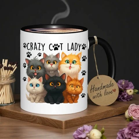 Leken Katt & Sommerfugl Keramisk Kaffekopp.