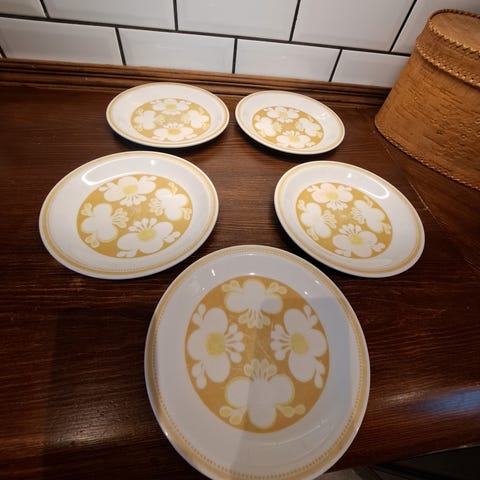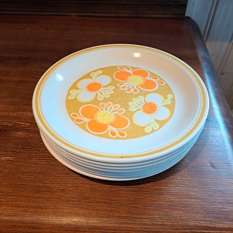 Selger en Figgjo Safran teller til kr 70,- + porto. Diameter ca 24 cm. Den har litt slitasje på motiv se bilder.