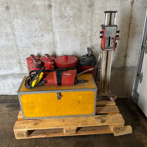 Selger kjernebormaskin med stativ og 15 ulike kjernebor. Utstyr har aldri vert i bruk og er kjøpt fra Motek.