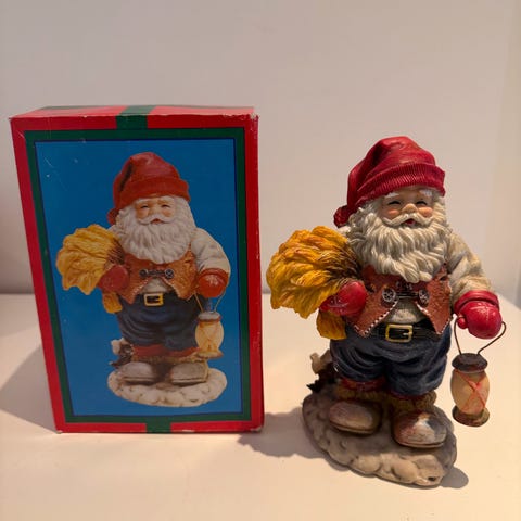Stor og veldig fin Hedlundnisse med lykt. Originlaeske som er teipet medfølger. Nissen er i veldig fin stand. 18 cm høy.