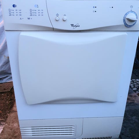 Gram kondens tørketrommel. Kondensmodell uten spesifiserte tilleggsegenskaper. Egnet for tørking av klær og tekstiler. Den er5 år gammel,har kapasitet til 7 kg