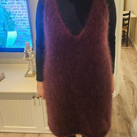 Kjole strikket i chunky ballerina mohair fra Sandnes Garn i fargen koksgrå. Strikket i str S. Litt stor i størrelsen. Ubrukt. Selges for prisen på garnet.