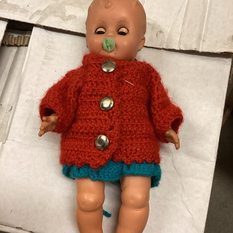 Stor pakke med retro babydukker med masse klær og utstyr selges samlet. Dukkene er fra Baby Born og Zapf Creation. Baby Born-dukken lager lyd og lukker øynene når hun ligger. Begge dukkene er i god forfatning (se bilder). Klærne er stort sett hele og pene, men enkelte plagg trenger nok et par sting her og der (se bilder). Pakken er svært innholdsrik, så her får du mye for pengene.