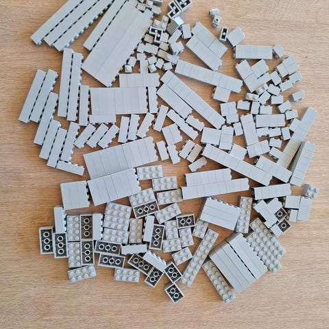 340 sorte legoklosser. 66stk 2×4 107stk 2×2 14stk 2×3 2stk 2×6 1stk 2×8 1stk 2×10 19 stk 1×3 61 stk.1×2 27stk 1×1 20stk 1×4 10stk 1×6 4stk 1×8 2stk 1×10 2stk 1×12 4stk 2×2 hjørnekloss. Kjøp bare det du ønsker små bestillinger kan sendes som brev
