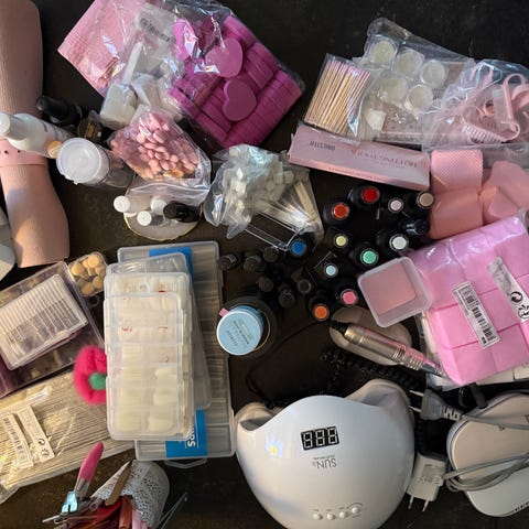 Inkluderer tang, lim og litt hår i forskjellige farger