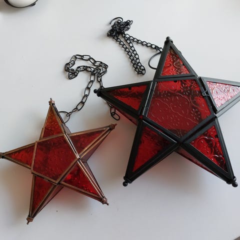 Selger to julestjerner fra Rusta (noen av lysene pulserer så det ser ut som stjernen glitrer). Brukt kun 2 uker i fjor og ikke i år. 75 kr per stk.