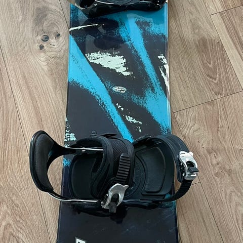 Selger snowboard for barn/ungdom, Ride Blacdragon, komplett med justerbare bindinger. Perfekt for nybegynnere eller lett øvede.