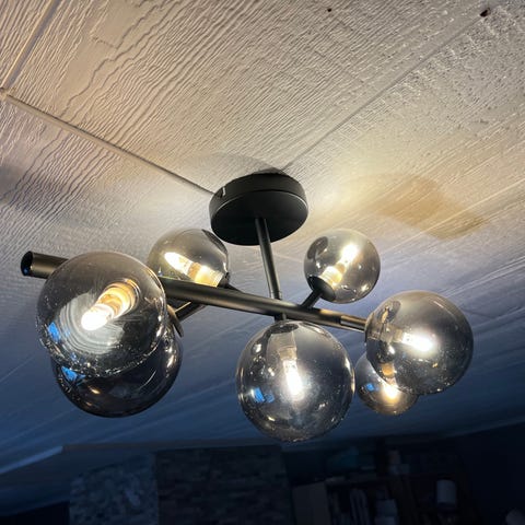 IKEA barometer taklampe, spotlight lys med 5 spotter. Må hentes. Fargen er i sølv, det første bilde er kun for å vise modellen.