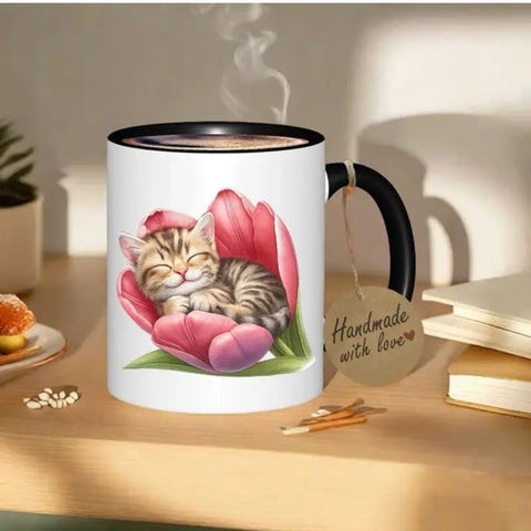 Kattunge Sovende Tulipanblomst Krus, 11 Unse, 330ml.