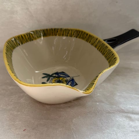 Håndmalt Ildfast serveringsskål i flott stand selges for kr 200,-