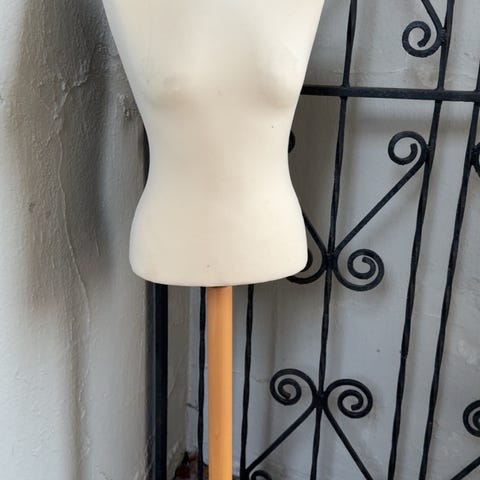 Svart kvinnelig byste mannekeng i plastmateriale. Brukes til søm, eller visning av klær og tilbehør i butikk eller for fotografering. Selges samlet kr 800,- eller enkeltvis 450,-.