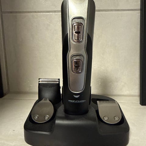 Andis Multitrim detaljtrimmer med flere kammer, lader og brukerveiledning. Inkluderer forskjellige størrelser på kammer, olje til vedlikehold. Der følger med en solid og god klotang. Egnet for presisjonsklipping og trimming. Er ikke brukt '