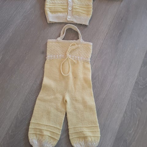 Hjemmestrikket sett selges. Pent brukt, ingen anmerkninger. Nupper kan forekomme, men har gått ganske godt over med nuppefjerner. Margotbukse str 0-6 mnd, «ankers»-sokker 0-6 mnd og ankersjakke str 3-6 mnd. Alt er strikket i ullgarn. Jakka i pernilla, sokkene i baby merino fra drops og buksa i mini sterk eller sterk(husker ikke akkurat nå).