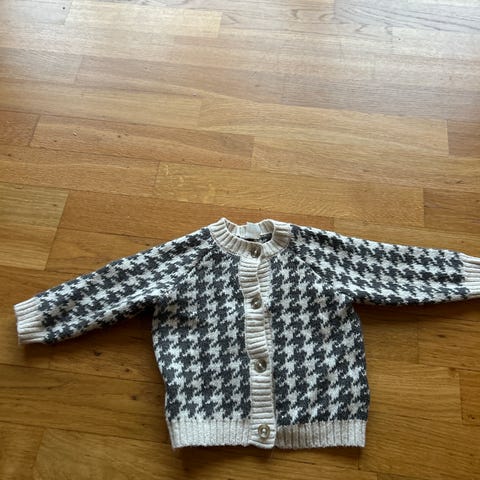 Kjempefint hjemmestrikk, pent brukt på ett barn. Passer ca størrelse 68.
