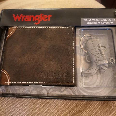 flott ektig skinn lommebok fra Wrangler, som kommer med nøkkelring
