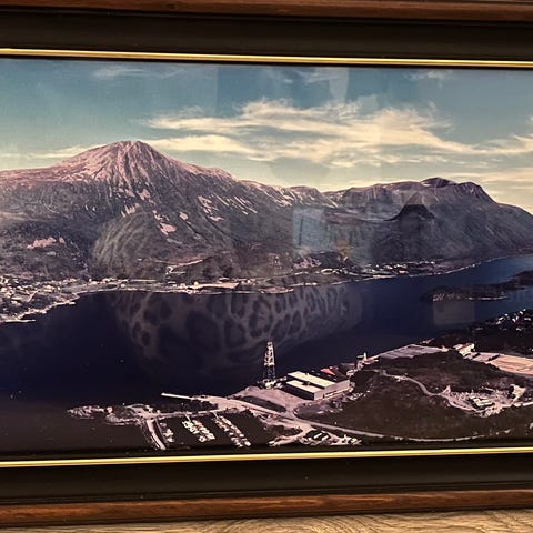 Bilde radering av Even Framdal Altertavle Ringsaker Kirke 1930 . Bilde har et fukt merke i bunn og papirtape har løsnet pa bakside. Bilde str utvendig på ramme bredde ca 74 cm og høyde 62cm.