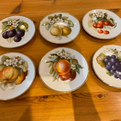 Vintage sett med ville blomster. 4 kopper (1,5dl, perfekt stand) og 2 tallerkener (Ø 17,5cm, men noen bruksmerker, matt i glassuren).