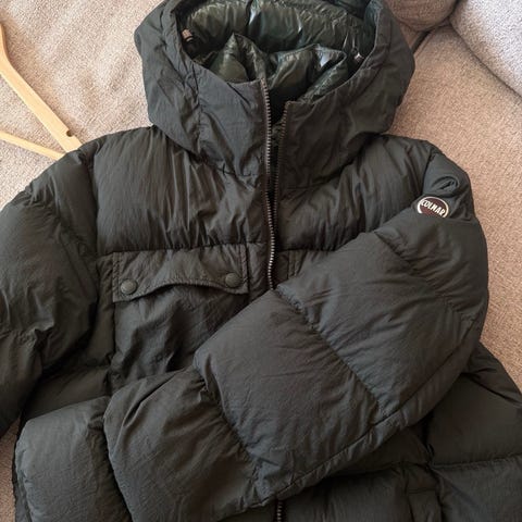 Acne Studios Vinterjakke i størrelse 34 for kvinner. Jakken er grønn og laget av dun, noe som gir god isolasjon og varme. Egnet for vinterbruk. Jakken er stor i str . Vil si en s-m