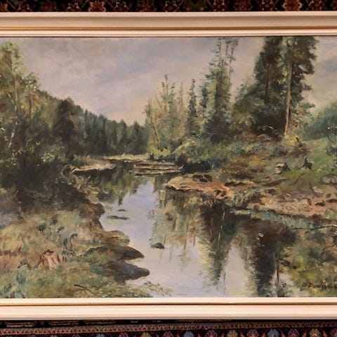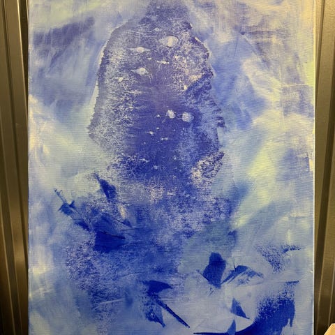 Pent maleri med struktur i nøytrale farger. Spent opp på tre ramme med vaieropphrng til veggfeste.