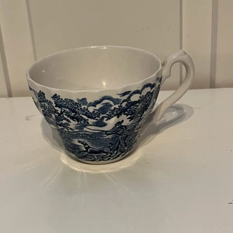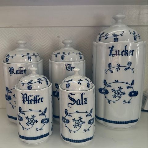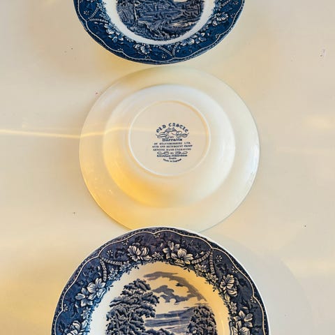 5 blå fat Staffordshire England, noe krakkelering, samlet 250. Solgt