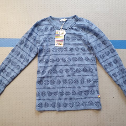 Helt ny Joha merinoullgenser med snørkrystaller og hvite snøfnugg, str 128-134.