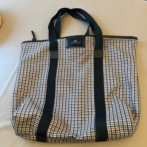 DAY ET skulderveske i stoff, designet for dame. Vesken har svart farge og justerbar skulderrem. Den har flere lommer med glidelås for oppbevaring av små eiendeler.