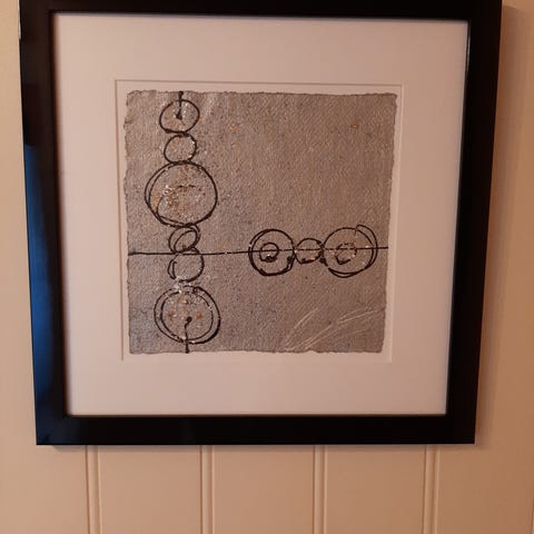 Det innrammede verket måler totalt ca. 30 x 28 cm, og sølvdelen er ca. 12 x 9 cm og har intrikate detaljer av en liten fiskerlandsby i Italia, det ligger fiskebåter på stranden, og en seilbåt på sjøen. Vakkert håndmalte høydepunkter.