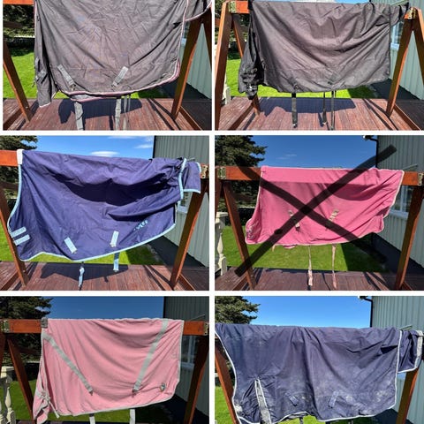 Må være regntette, ellers går det helt fint om dem har småskader. Skal brukes på føll/åring, som vokser fort, så er ute etter billige dekken.