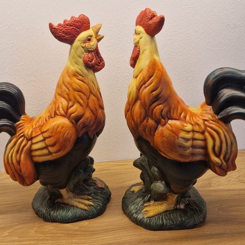 Påfugl figurer i hvit keramikk/ porselen? Dekorative og elegante samleobjekter som kan brukes til innredning i hjemmet. Passer for alle årstider. 26cm høy og 30cm i bredden.