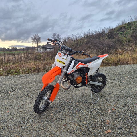 Selge ein ktm 50 sx til høyest bydende over 8000 kr. Selges som reprasjon objekt, da den er vanskelig å få start på tannhjul på kick aksling inni motoren er slitt.