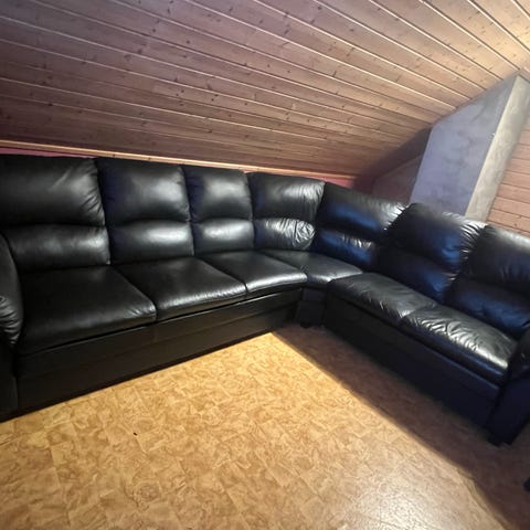 Brun hjørnesofa i skinn – må hentes