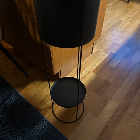 Stålampe, 176 cm høy, diamter 27 cm, max 150 watt + lampett selges samlet.
