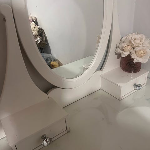 Full glass sminkebord sett med Speil