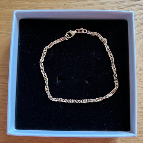 Singapore armbånd i hvitt gull fra Gullfunn. 19 cm. Pent brukt noen få ganger. Har kvittering. Ny pris: 10.499 kr