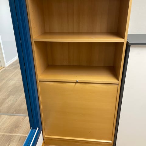 2 hyller i tre, kan stå både over hverandre som på bildet eller ved siden av hverandre. Hver hylle måler 80 cm i høyde, når de står over hverandre som på bildet blir høyden 160 cm.