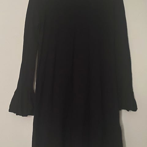Nydelig sort strikkekjole med fine detaljer.
