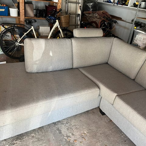 Merke: sofaen er omtrent 6 år gammel, men den er i god stand, fullt funksjonell, det eneste er at det er et lite merke på stoffet, synlig på et av bildene.