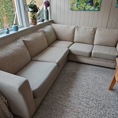 Sofa selges fordi vi kjøper en ny. Sofaen er i god og funksjonell stand.