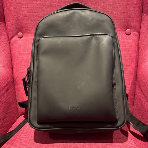 Rains ryggsekk laget av kunstlær, designet for unisex bruk. Ryggsekken har en slitesterk og vannavvisende overflate, egnet for daglig bruk og ulike værforhold.