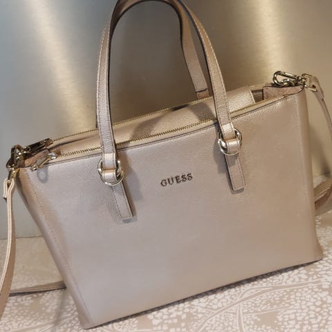 GUESS tote veske i svart og beige rosa