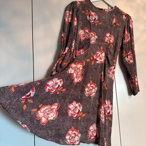 Kjolen er i bomull. Brukt en gang eller to, fremstår som ny. Den ble, dessverre, litt for stor for meg.