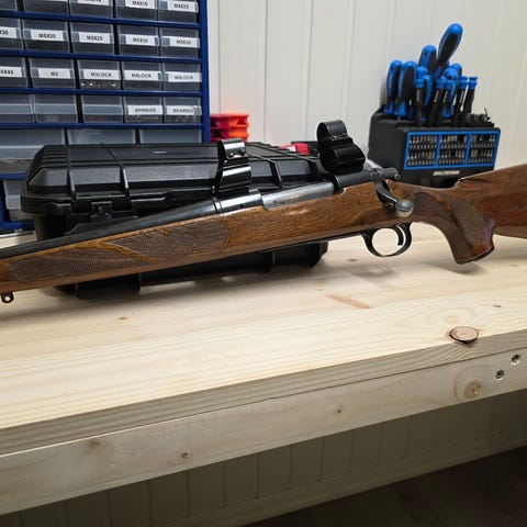 Så da sitter vi med et regnestykke som ser sånn ut: Rifle kr 4500. Løpsemne kr 3000. Modifisering av magasin og materampe kr 800. Kikkertsikte kr 2000. Kikkertringer kr 500. 100 stk hylser kr 1000. 250 stk kuler kr 875. Diesett kr 700. Hylsetrimmer kr 300. Støpetang kr 650. Tilsammen kr 14325. Hvis det er noe av dette du ikke vil ha med, så er jeg villig til å diskutere det. Prisene er selvkost! Rifla er selvfølgelig registrert, og krever kjøpetillatelse fra politiet. Dette blir en Rolls Royce av ei rifle! Mye bedre enn masseproduserte våpen som er å få i dette kaliberet. Kaliberet er veldig bra på rådyr. Veldig bra på lange hold. Hvis kaliberet er ukjent for deg, så ta en titt på Youtube. Ett av bildene mine viser en 6.5 Grendel ved siden av en vanlig 6.5x55. Jeg vil helst selge prosjektet til noen som har anledning til å komme å se tingene.