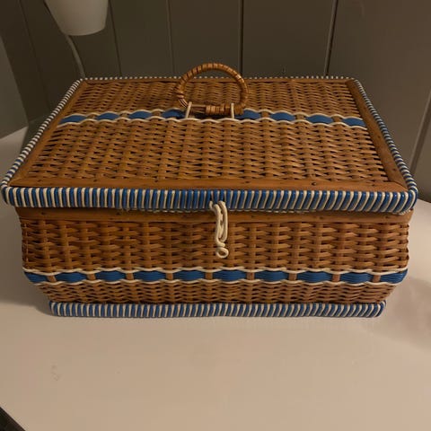 Vintage skittentøyskurv i strå. Trolig håndlagd fra 70-tallet. I fin stand. Brukt til å oppbevare Håndklær og tepper osv.