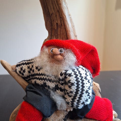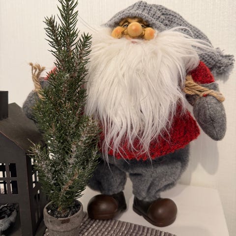 Flott juledekorasjon med nisser kjelke dompap nek julegaver m.m