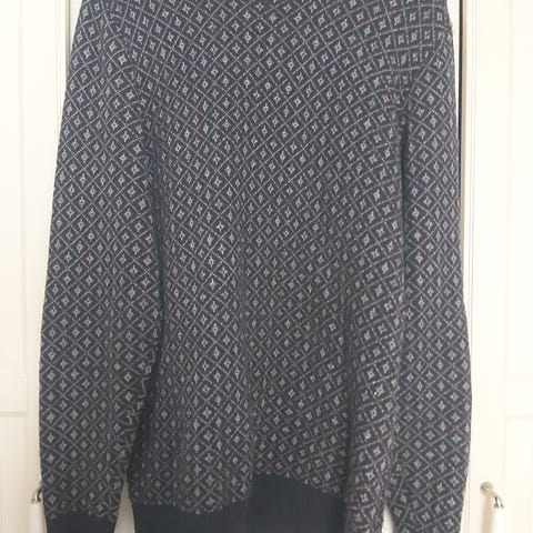 Flott stripete ullgenser, størrelse Small herre. Men jeg har brukt den (dame), og passer fint en M. Klassisk!