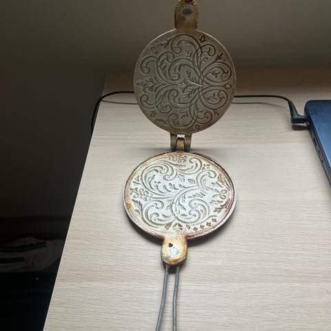 Og jøtul krumkaker? Vet ikke ? Og langt jern i midten? Aner ikke ? Guro ?ukjent alder , opphav. Selges som de er . 😀kr 500,- pr stk