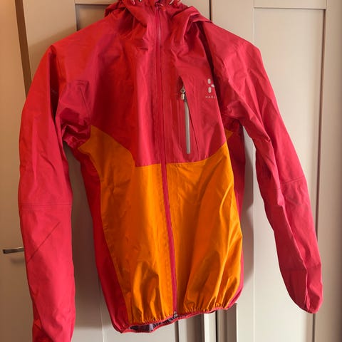Passer perfekt til løpetur/ fjelltur eller som en tynn regnjakke. Veldig behagelig på. Tar veldig liten plass når den pakkes sammen.