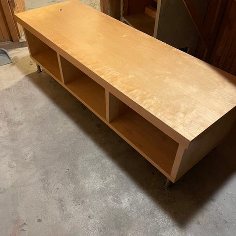 Enkel TV-benk som passer fint til kjellerstue/hybel.