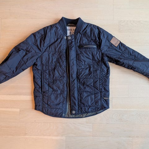 Selger en stilig Ver de Terre Lumber Jacket (Style #721) i sort. Jakken selges rimelig da hetten mangler, men den fungerer utmerket som en tøff bomberjakke til hverdags, skole eller penbruk.